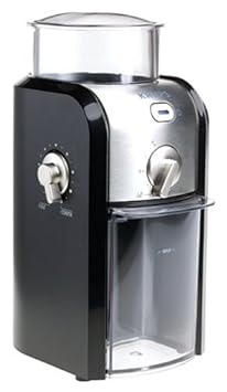 Combining the adjustable fineness selector of Krups's burr grinder with its built-in quantity control produces the perfectly tailored cup of joe. Start by choosing from 17 different textures ranging from very fine for espresso machines to very course for use in a French press. Next, determine the number of coffee drinkers and adjust the quantity setting accordingly. As the grinder begins its work, it uses a burr milling process to produce consistently ground beans while preserving the coffee's natural aroma. The machine automatically stops once the designated quantity has been achieved and the coffee extracts easily via a removable container. Topped with a large capacity hopper, the grinder fills effortlessly and provides easy access to its removable burr for cleaning. Measuring 10 by 4-1/2 by 5-1/2 inches, this tool comes with Krups's 1-year warranty. -- Amy Arnold